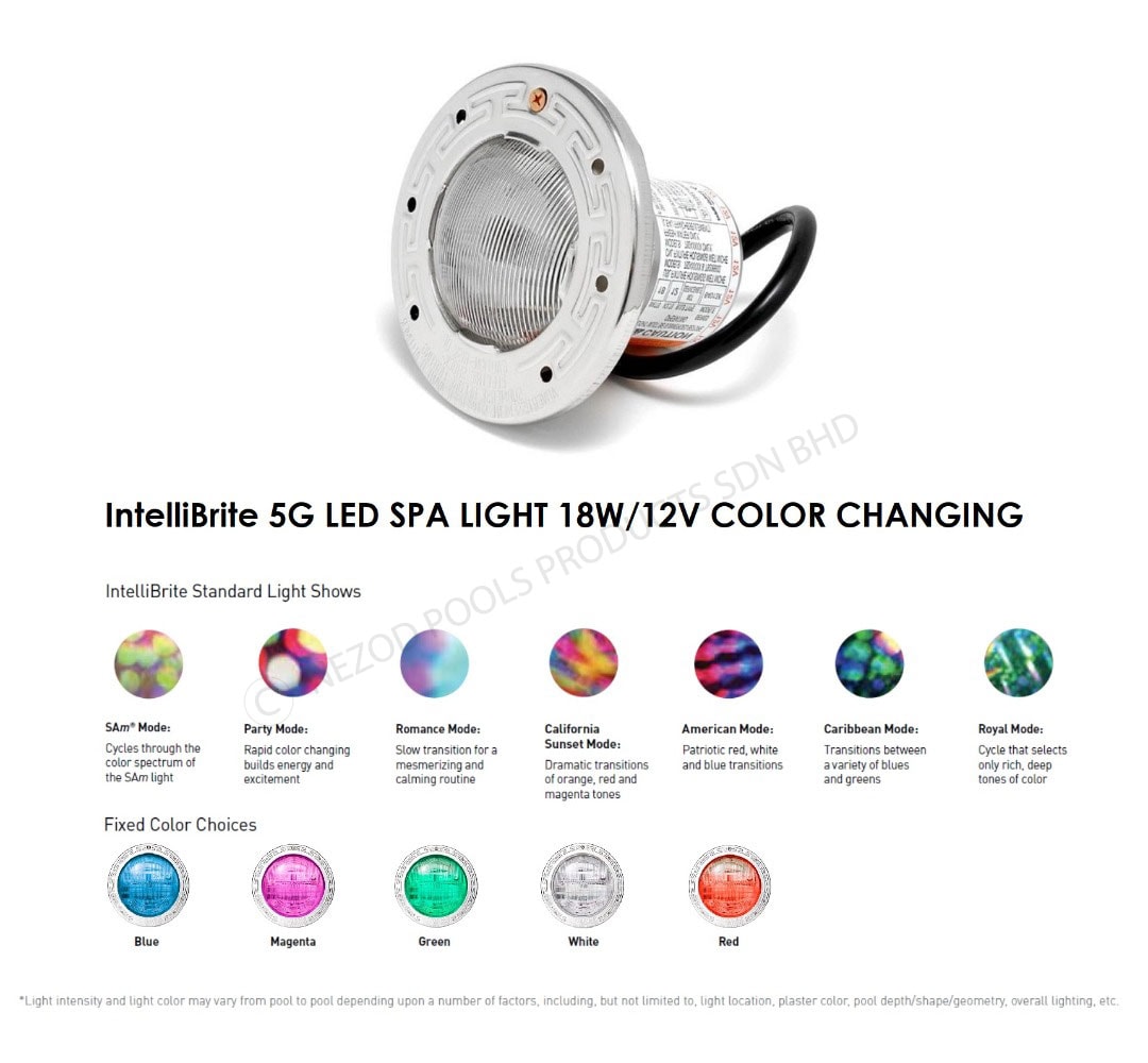 PENTAIR INTELLIBRITE 5G COLOR LED SPA LIGHT 18W/12V UNDERWATER LIGHT RGBW
