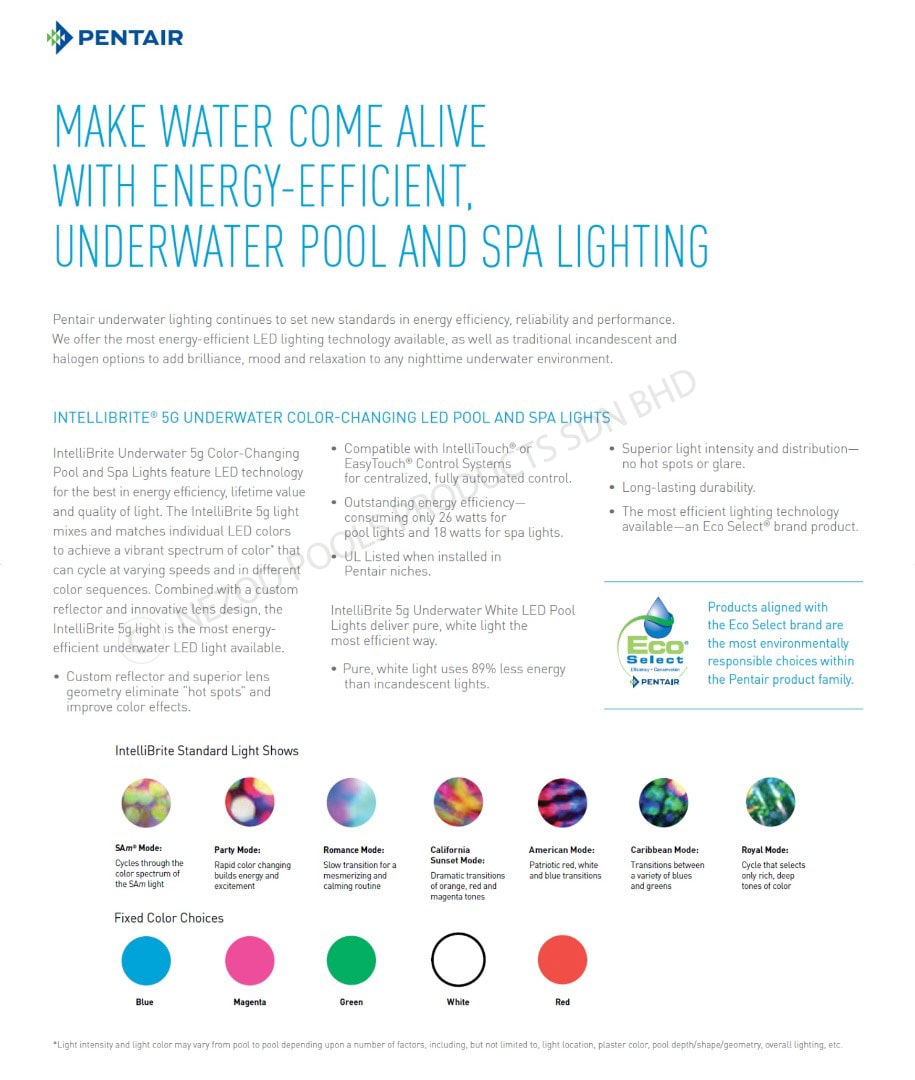 ONE OF THE MOST ENERGY-EFFICIENT COLOR UNDERWATER POOL LIGHTING SOLUTIONS AVAILABLE FOR COMMERCIAL AND PRIVATE SWIMMING POOLS.