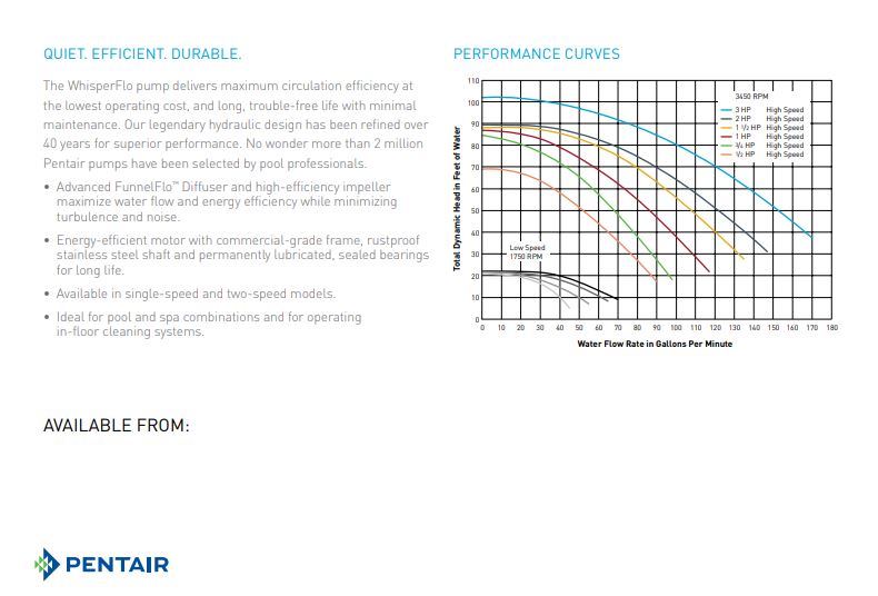 This pump’s hydraulic design offers the high water flow while providing quiet performance. The WhisperFlo High Performance Pump is built to last, with an engineered thermoplastic housing and robust motor components. Unique design features make this pump easy to monitor and clean.