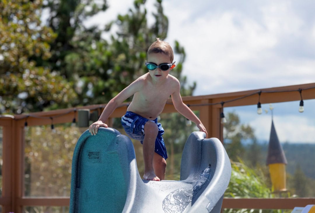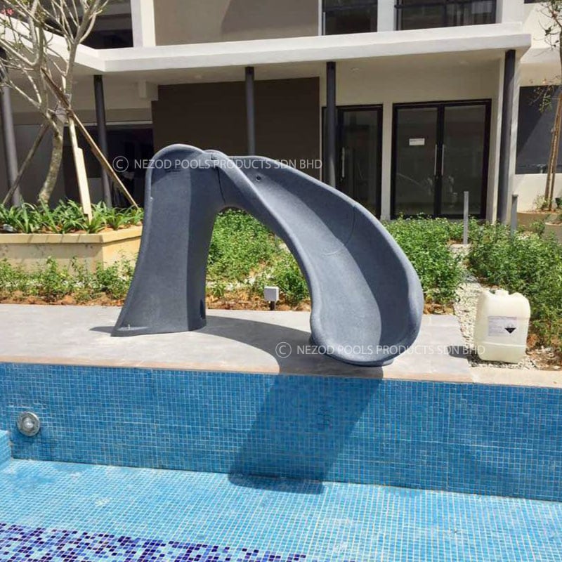 • Wide Flume : Pool slides with deep and wide flumes keep anyone slip sliding away exiting the slide safely.