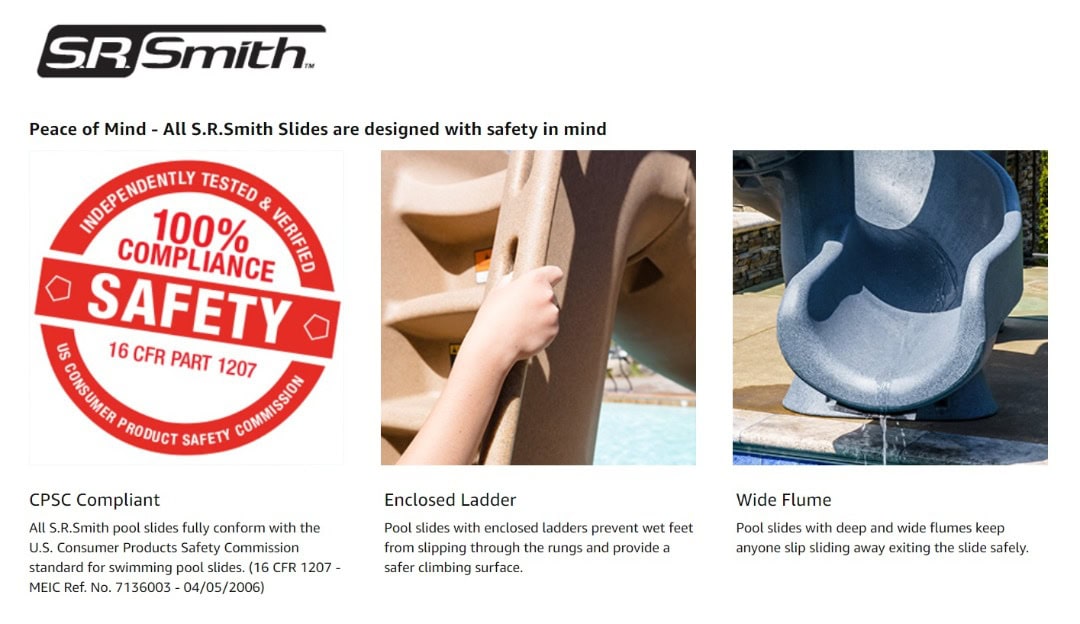 • CPSC Compliant : All S.R.Smith pool slides fully conform with the U.S. Consumer Products Safety Commission