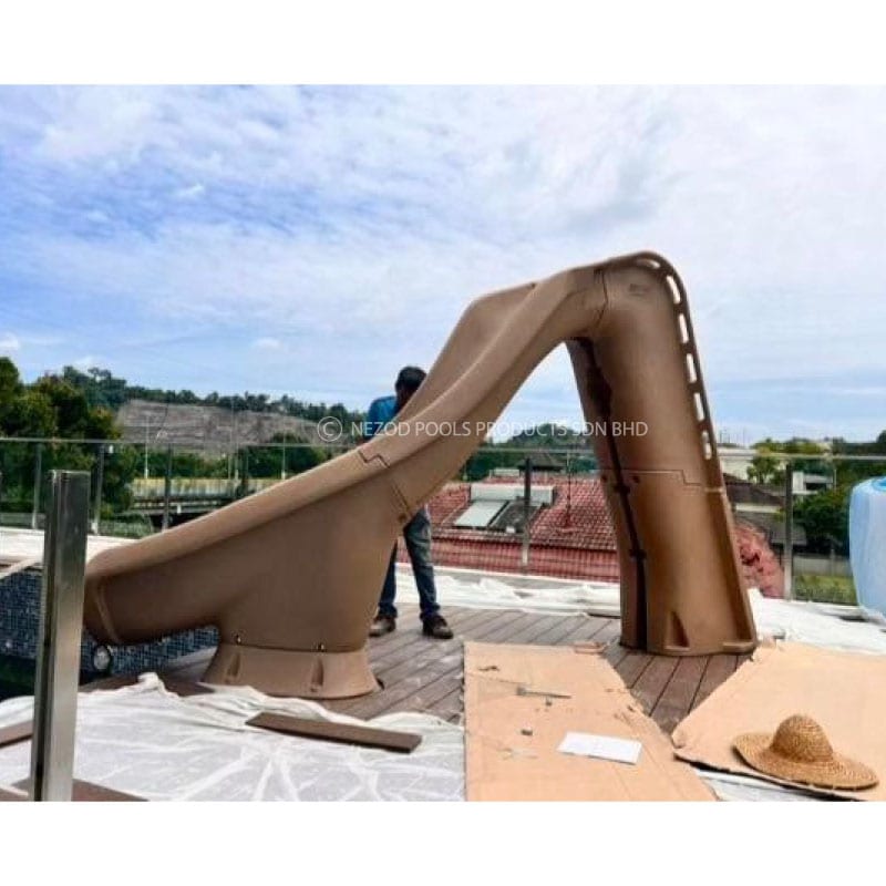 • Wide Flume : Pool slides with deep and wide flumes keep anyone slip sliding away exiting the slide safely.
