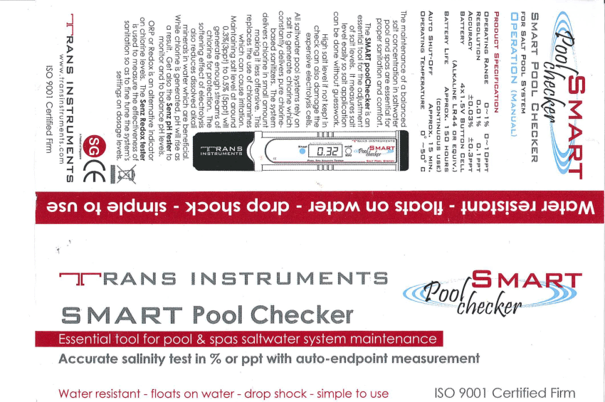 TRANS INSTRUMENTS SMART SALT POOL CHECKER – ISO 9001 CERTIFIED